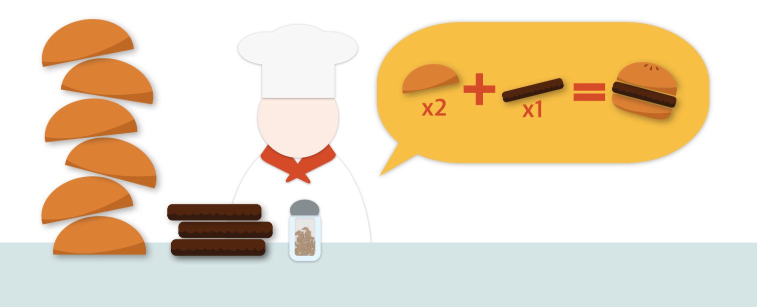 - 패티 위에 다시 빵을 올려서 햄버거를 완성시킨다.